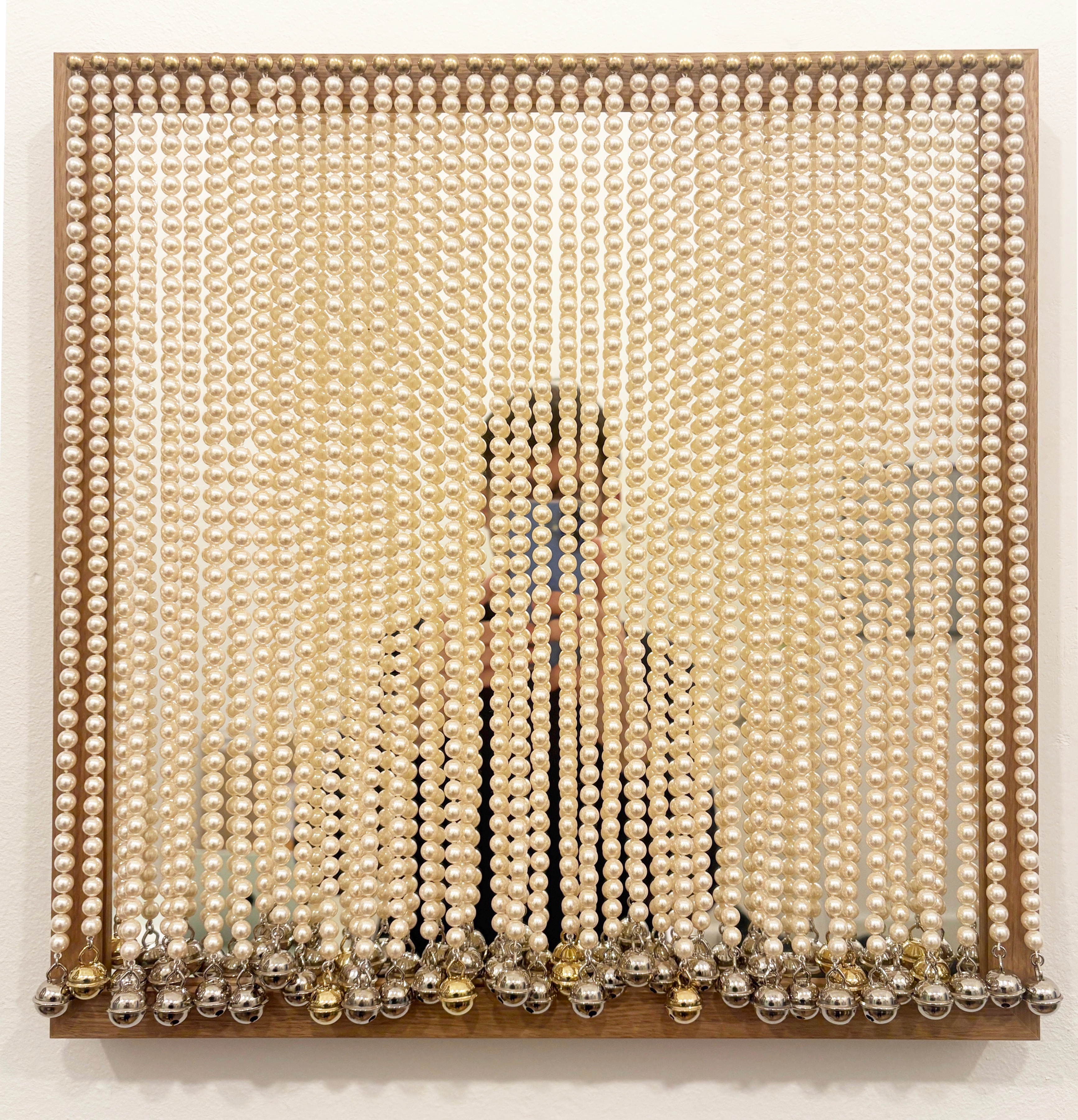 Wood framed mirror, glass, brass