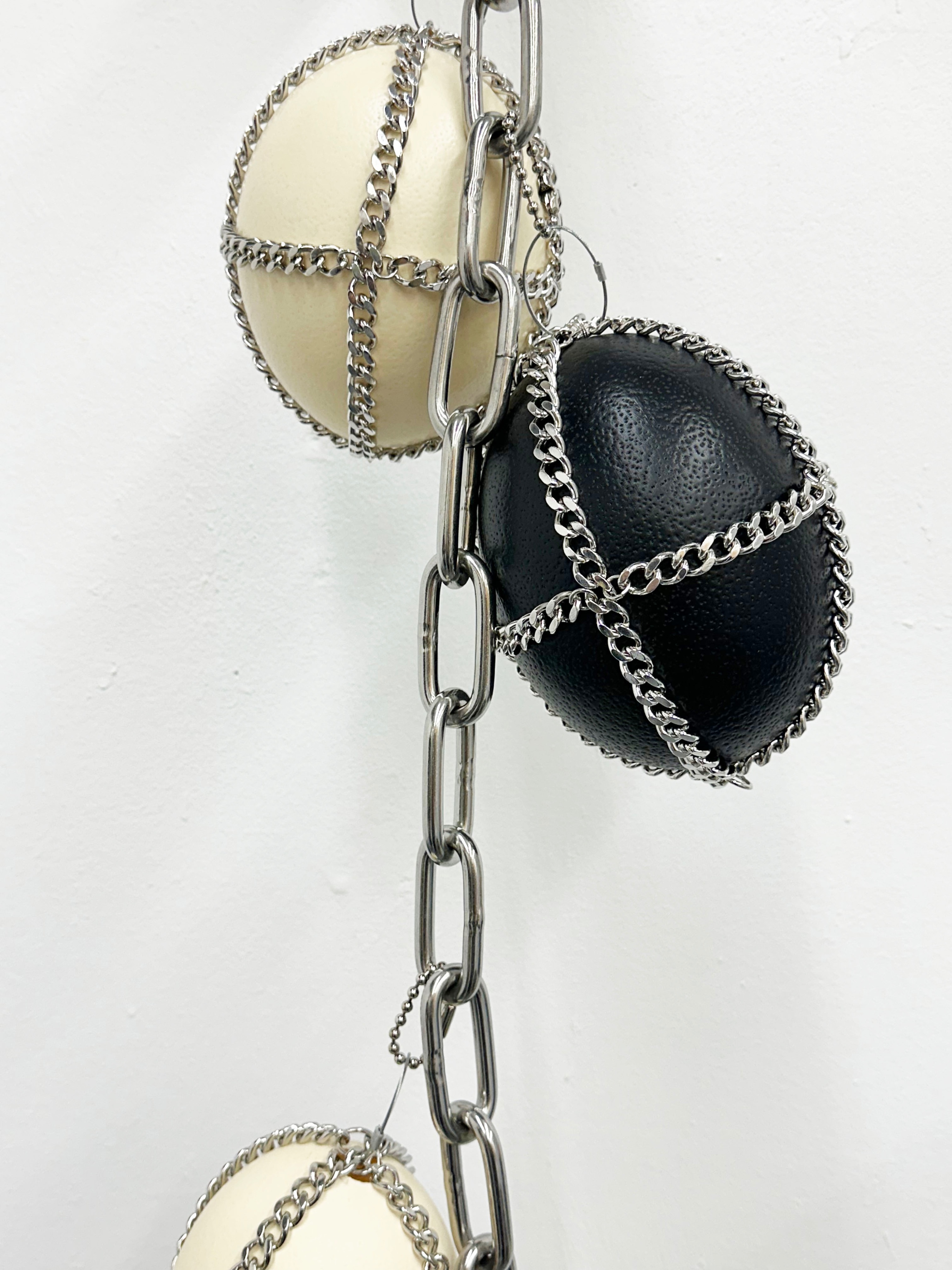 Stainless steel, found objects (Fabergé-style ostrich eggs)