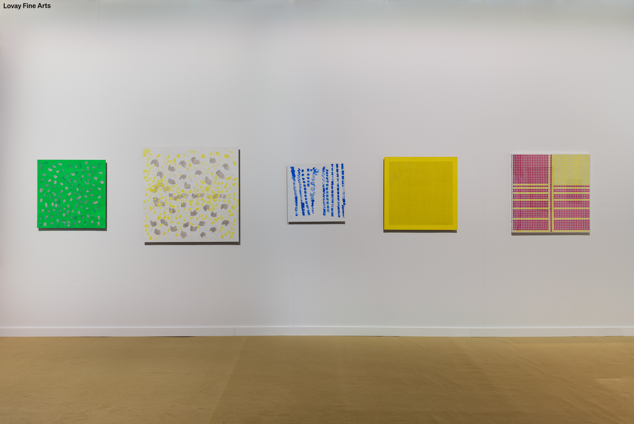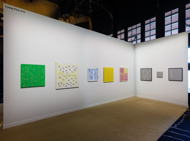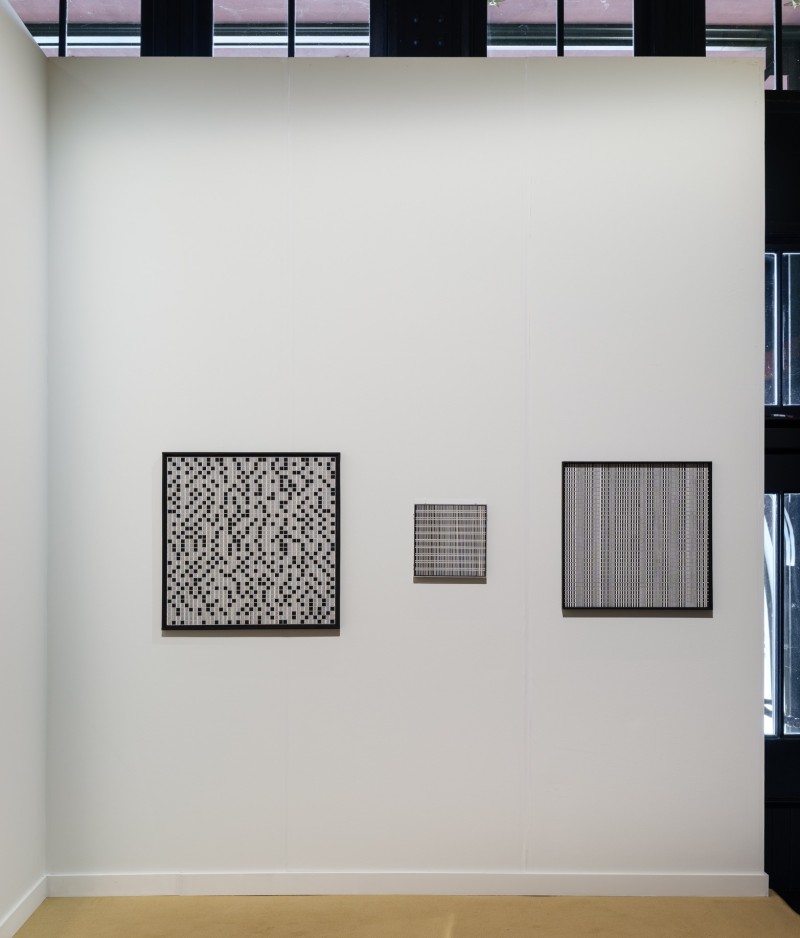 Di Luciano, together with her late husband Giovanni Pizzo (1934–2022), was a pivotal figure in the Arte Programmata movement in the early 1960s (3 works shown on the booth). Emerging in the postwar era, the movement emphasized geometric abstraction as a universal visual language capable of transcending cultural and geographic boundaries. In Italy, the artists of Arte Programmata based their compositions on rules, programmed systems, or serial sequences, deliberately delegating authorship in order to challenge the traditional notion of the artist and explore art as a process. They collaborated with musicians, in particular with composer Pietro Grossi, a pioneer in computer-generated music. Di Luciano and Pizzo also initiated several collectives of artists in Rome, most notably Gruppo 63 and Operativo R.