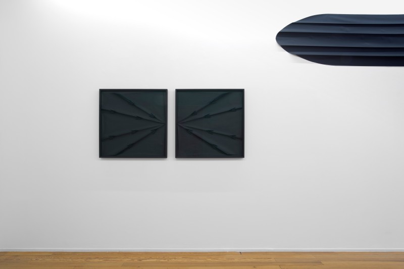 Marie Gyger’s work is distinguished by an elegance and formal refinement which functions as a veil over a contained yet smouldering critical charge. The repetitive patterns of the folds she meticulously produces both reveal and disguise. At first view, their delicate appearance discreetly wards off evidence of the anxiety-inducing traits of everyday life, yet all the while they simmer beneath the surface.
