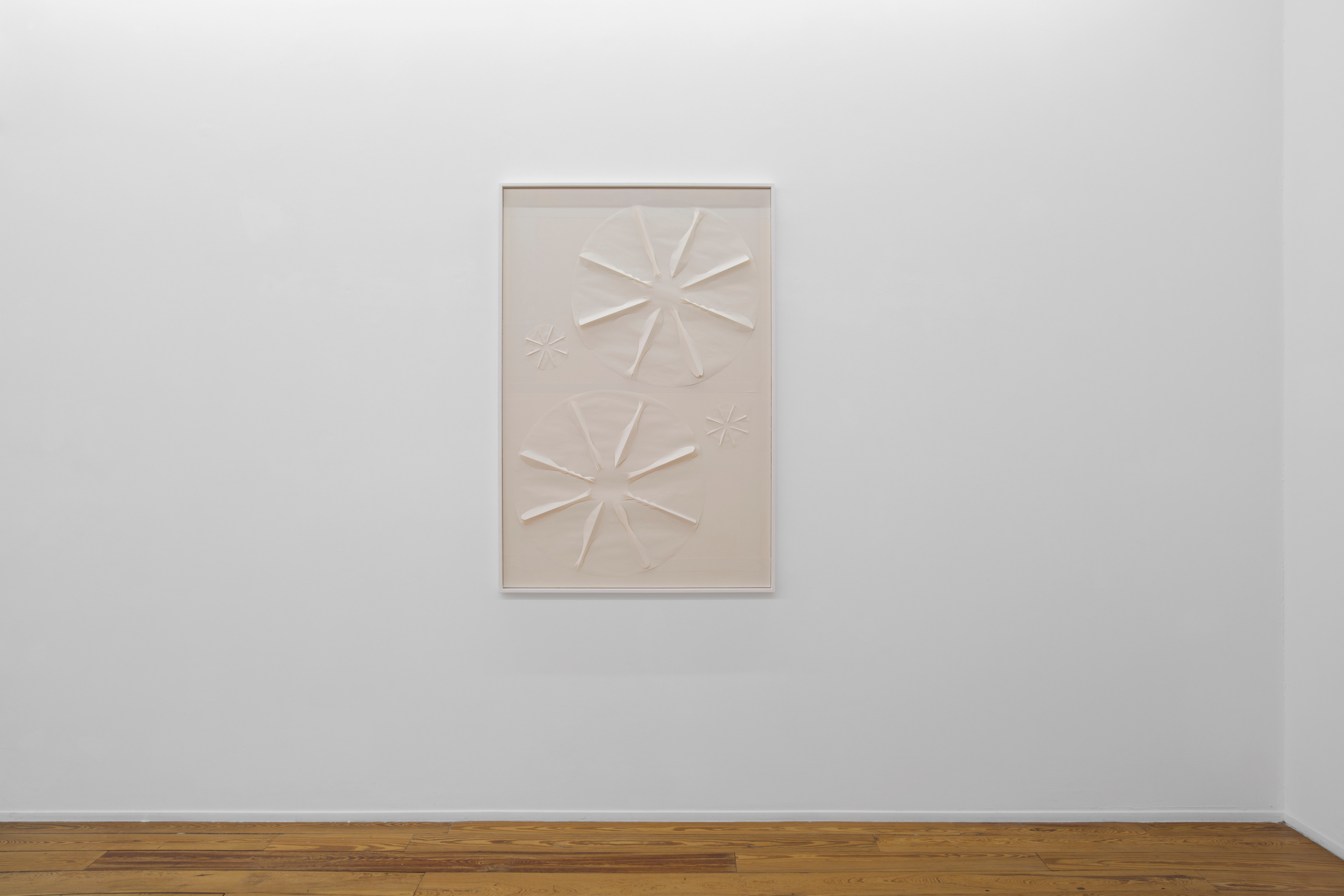 Gyger’s peculiar economy of means and the poor materiality of the work address the frequently absurd overproduction in contemporary art to which she reacts as an artist by developing her light and recyclable paper-folding technique. Several of the works on view were made last summer in her former Paris studio, have since been recycled, and now re-created for the current exhibition. This is an intentional rupture with logistical burdens, ownership, paper trails, and all the questions behind them.