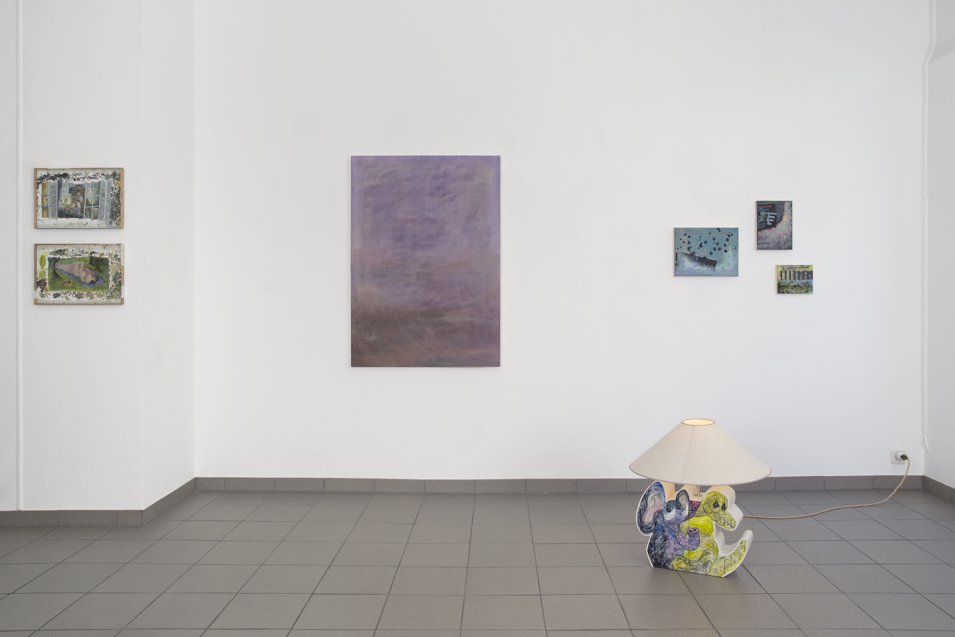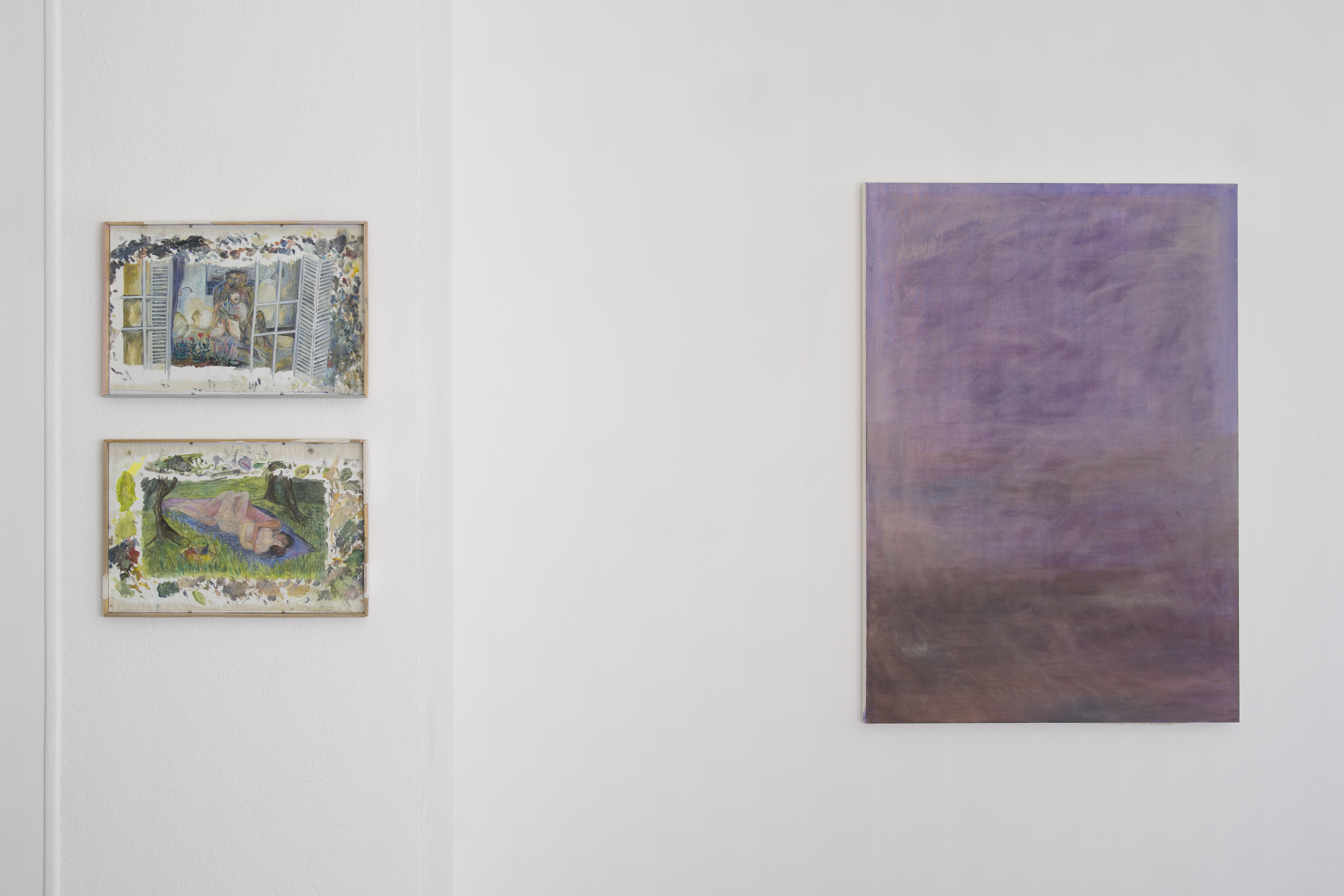 Through the lyrical use of form, language, and color, Tarek Lakhrissi (b. 1992)’s drawings evoke a sense of nostalgia connected to queer childhood experiences and its echoes. The drawings from this series develop a visual language shaped by imagined futures and shared emotional landscapes. Similarly, Audrey Ramos (b. 1998) creates dreamlike abstract paintings that merge her Peruvian heritage with her memories of growing up in the suburbs of Geneva. Her works depict repetitive or fragmented landscapes, conveying a sense of disorientation and a quest for familiarity within a cultural in-between.