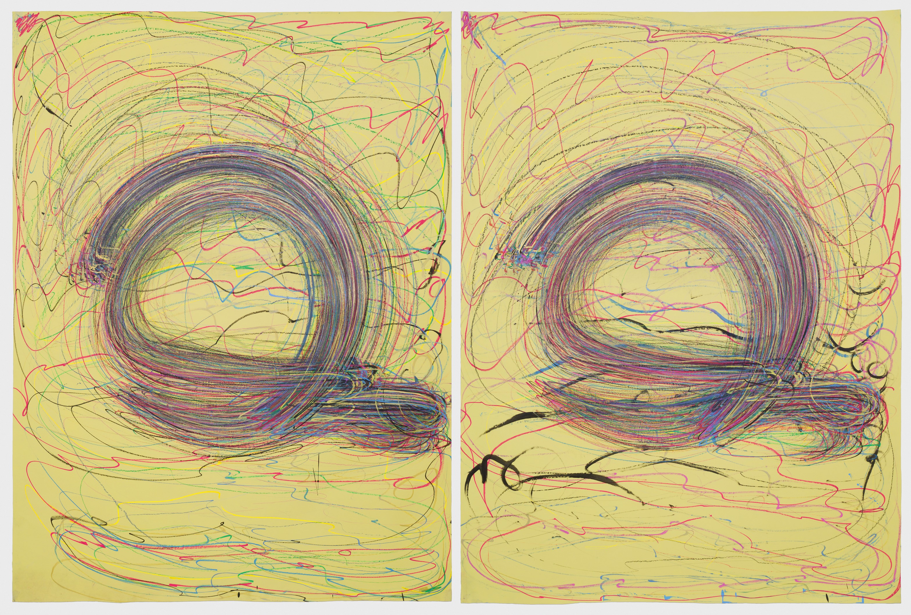 Acrylic pain, pastel, pen and pencil on paper
