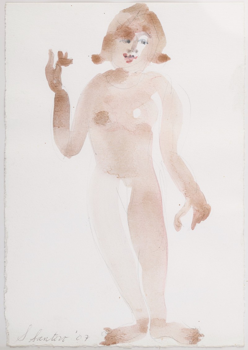 Blood Roses (2004-2009) and Femaleness (2006-2012), the two series of paintings on paper we are presenting, are part of a larger body of work that Santoro started in the 1990s. They were made through the repetition of motifs and gestures that are related to the origin of painting and that Santoro calls organic gesture, a movement starting as an impulse from the body, through the arm, and towards the paper.