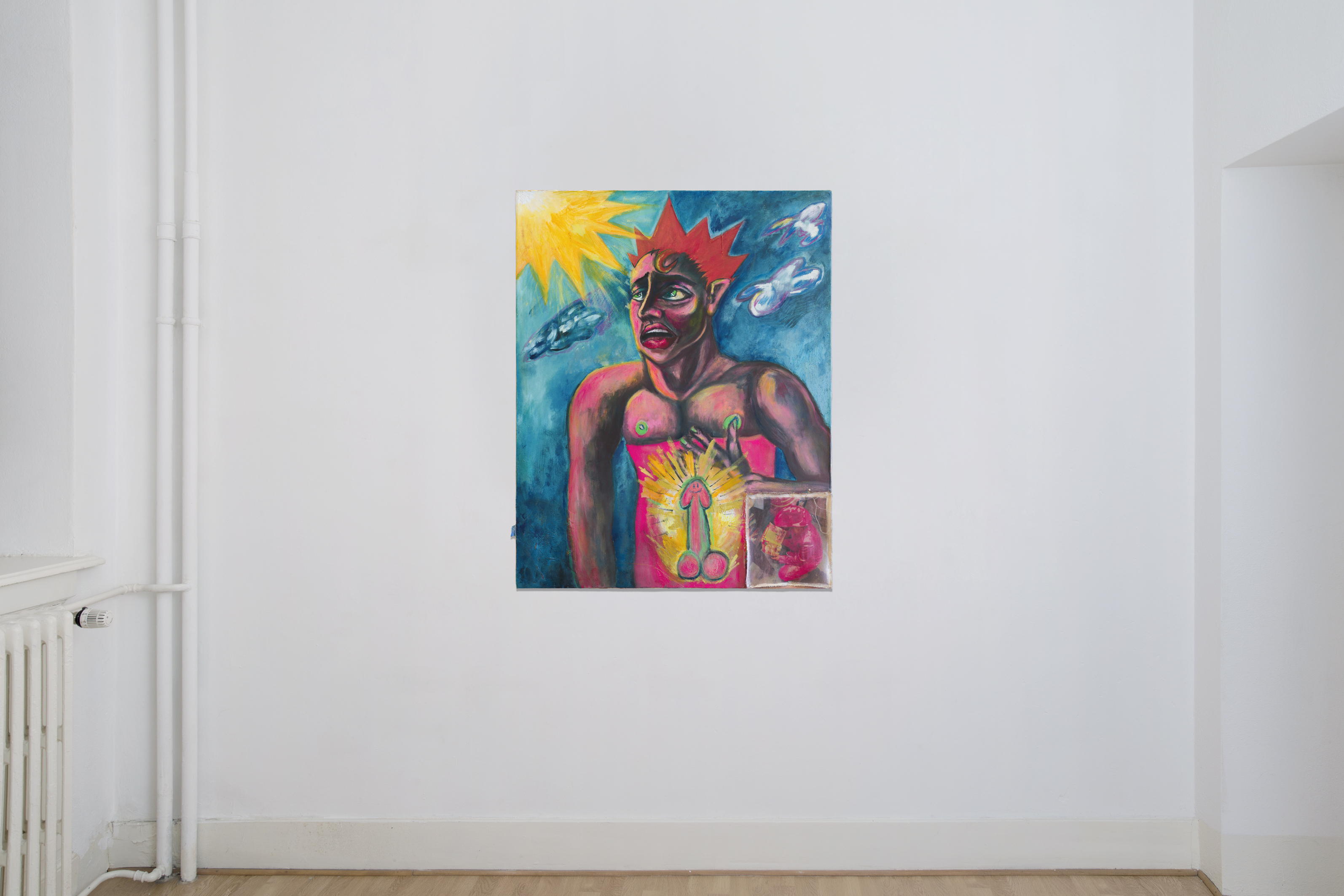 The paintings by Lexi Fleurs (b. 1998) weave personal experience into a vivid, theatrical language—where queer magic meets emotional intensity. The works shown in this exhibition come from two recent series: one created in New York in 2024, marked by an acid camp aesthetic, and another begun in Ukraine in 2025, where small canvases serve as intimate diaries from her time near the Donetsk frontline. Together, these works reveal a practice that is both cathartic and performative, transforming trauma, memory, and resilience into vibrant visual narratives.